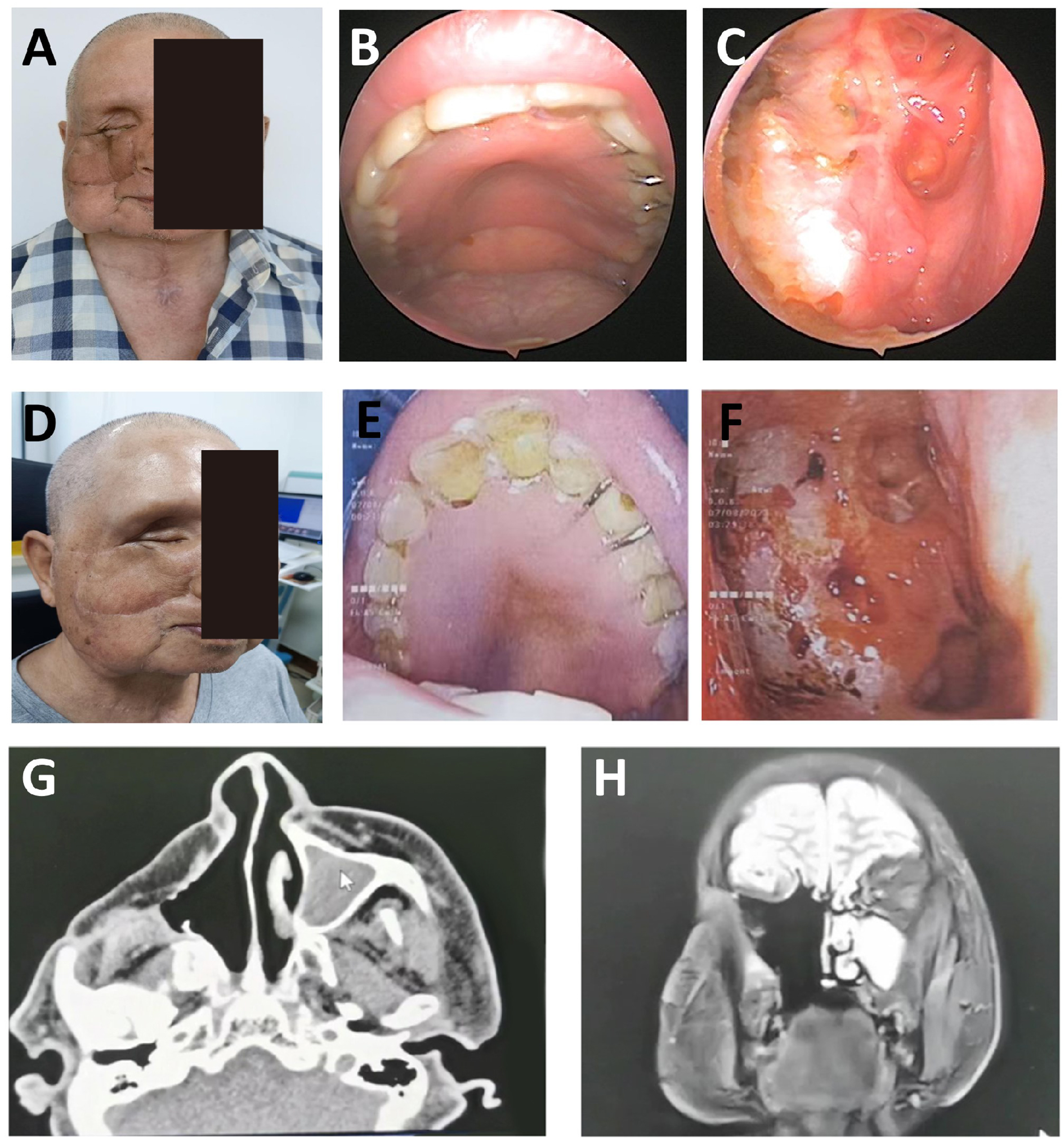 Currently, the standard treatment for SNMs includes surgical resection, radiotherapy, and chemotherapy (6). Surgery is generally preferred as the initial approach, enabling direct tumor removal and offering a foundation for disease control (7). In advanced cases, tumor invasion into orbital and facial regions often necessitates extensive resection, which may involve partial or complete removal of orbital contents, followed by complex facial reconstruction (MID: 25816080; PMID: 39266332). Radiotherapy and chemotherapy can contribute to local control and reduce recurrence risk but may also result in long-term adverse effects, such as tissue fibrosis, xerostomia, and altered taste, posing additional challenges for postoperative rehabilitation (8). Therefore, treatment strategies that balance oncological clearance with optimal reconstructive outcomes are essential for improving overall success rates (9).
