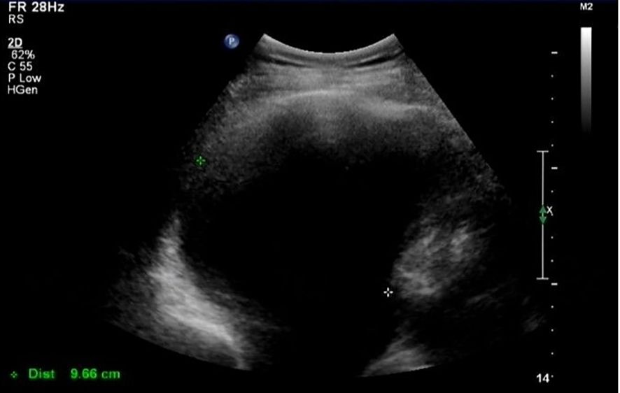 In June 2023, the patient complained of chest tightness and dyspnea. Bilateral pleural effusion was found. The pleural drainage fluid was still chylous. She could not tolerate systemic chemotherapy because of severe myelosuppression. Symptomatic treatments for chylothorax were performed, including thoracic puncture drainage and injection of bevacizumab and IL-2 into the pleural cavity. A large increase in abdominal fluid appeared in December 2023, and the drainage fluid was also chylous (Figure 3). Symptoms were partially relieved after perfusion of cisplatin and bevacizumab into the abdomen. The patient died in March 2024.