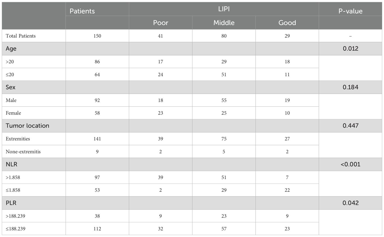 However, our study has several limitations. First, as a single-center study, it may be subject to selection bias. Nevertheless, with 150 osteosarcoma patients following chemotherapy, this study is the first to specifically focus on POC. Given the sample size, our findings provide valuable insights into the role of LIPI in prognostic prediction for POC. Future research will include multicenter studies to further evaluate the efficacy of this predictive model.Second, the retrospective nature of this study introduces the potential for recall bias. However, conducting prospective studies remains challenging due to the rarity and heterogeneity of POC. To date, no prospective studies have investigated prognostic prediction in POC. Therefore, our future research will focus on multicenter, large-scale prospective studies to validate our findings and enhance their generalizability.