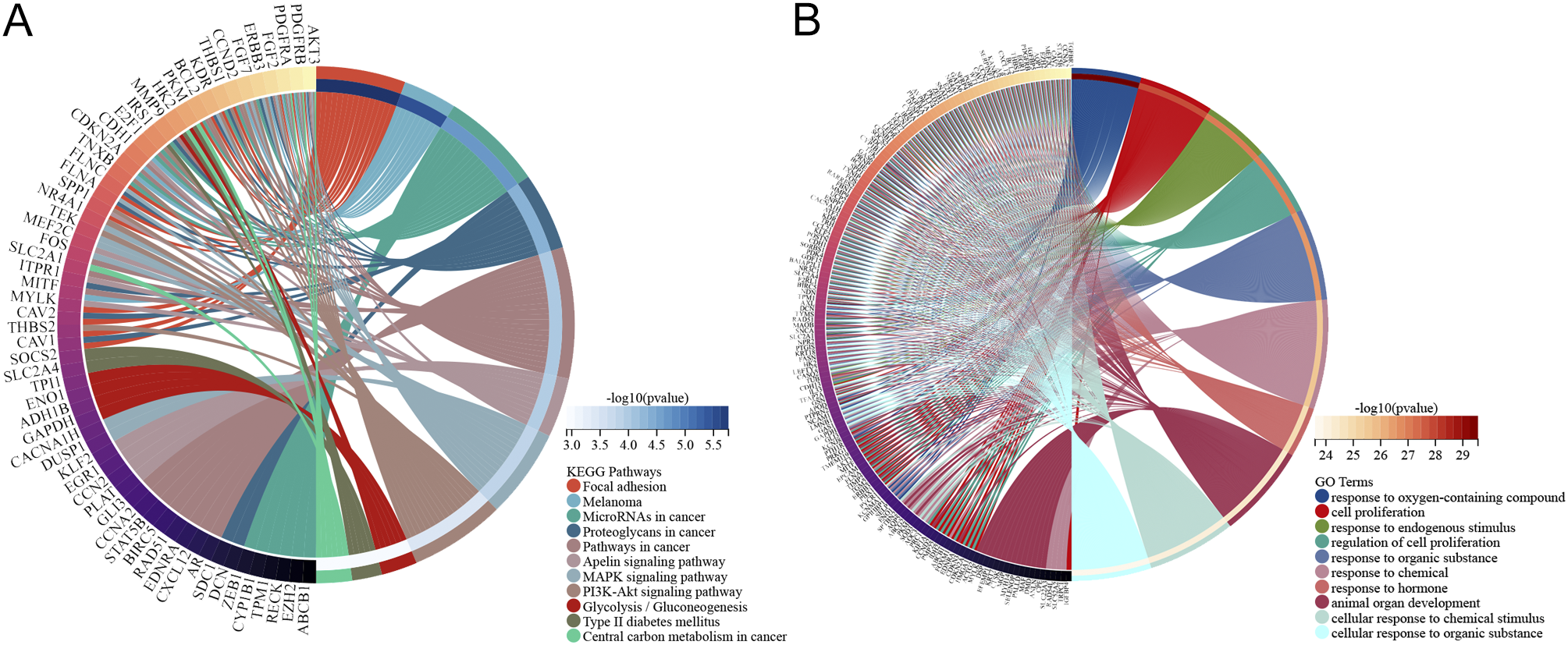 Pathway enrichment analysis of DM-DEGs. (A) KEGG analysis diagram of 186 DM-DEGs. (B) GO analysis diagram of 186 DM-DEGs.