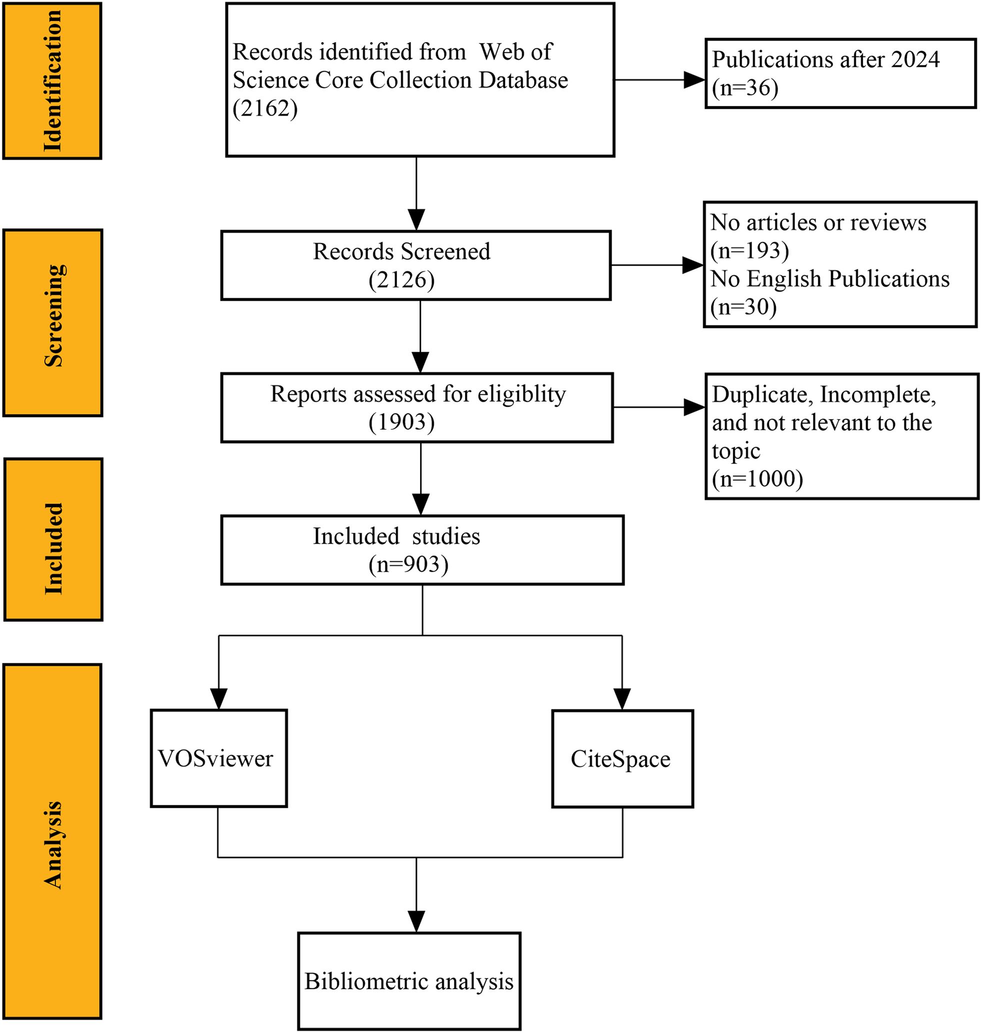 This study also has some shortcomings. First, only articles written in English from the Web of Science database were included in this study, which may have overlooked relevant literature from other databases. However, it is worth noting that the WoSCC database covers a wide range of subject areas and is one of the most widely used databases in bibliometrics, and visualization-based bibliometric analysis can provide researchers with a quick understanding of the field. Second, the latest published articles may not have been given enough attention and fully analyzed due to time factors, such as citation delays. Therefore, follow-up studies are needed to analyze them further.