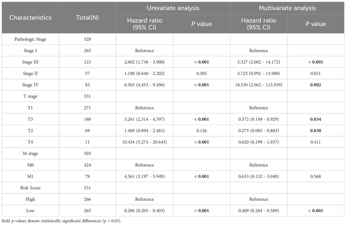 Table 4. Univariate and multivariate Cox analyses incorporating risk score from prognostic model and clinicopathological variables.