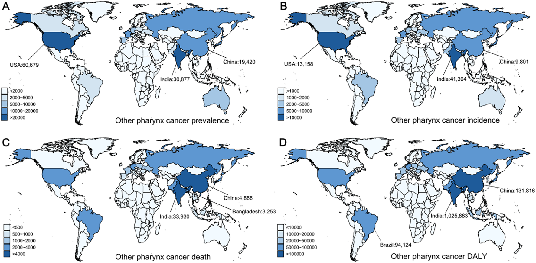 Huang A Wu X-l Song J Wang Y-T Yao Y Liu Z et al . Global trend and risk factors of the disease burden for pharynx and larynx cancers between 1990 and 2019: a systematic analysis of the global burden of disease study 2019. BMC Public Health. (2022) 22:2192. doi:Â 10.1186/s12889-022-14654-z
