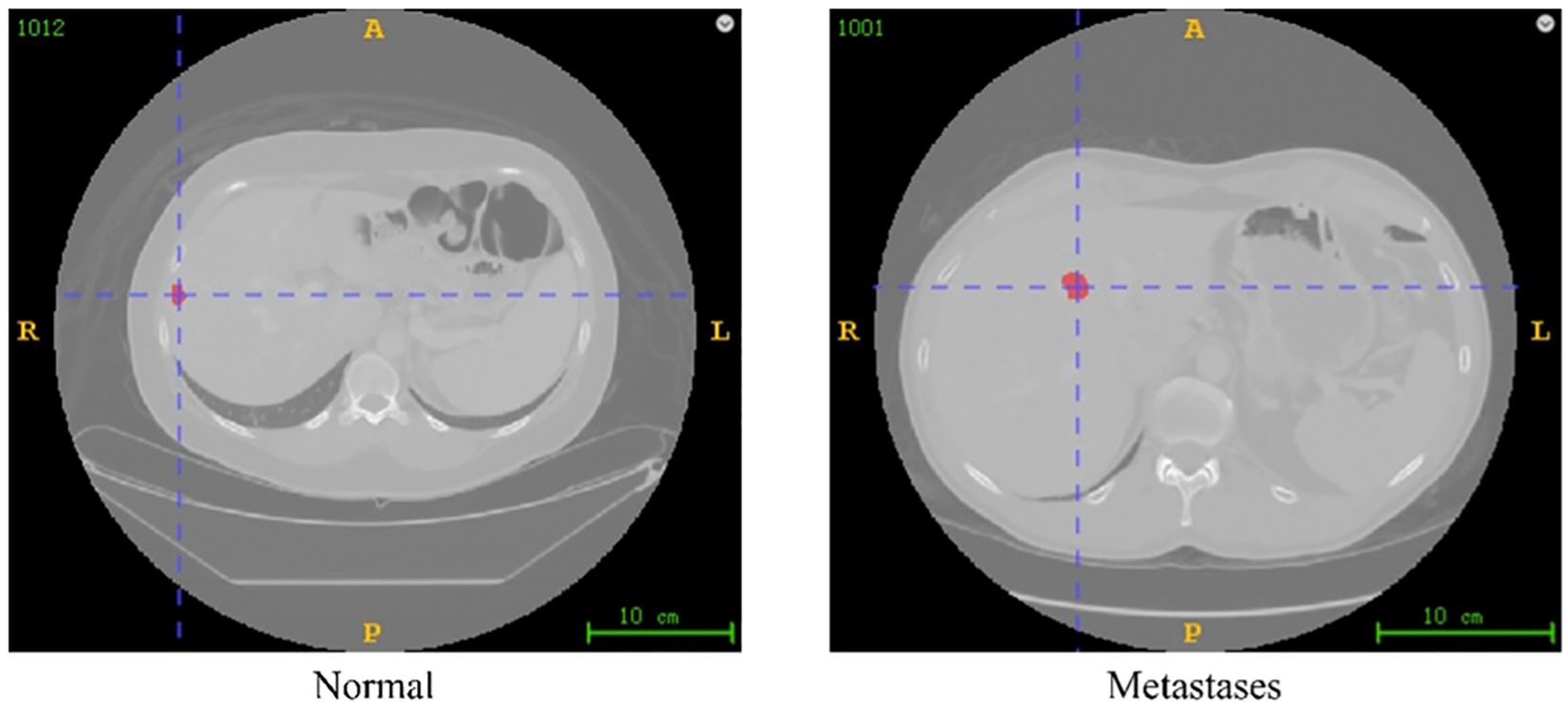 Images of colorectal cancer liver metastases were exported from the TCIA database and imported into ITK⁃SNAP software in DICOM format. Regions of interest for lesions on the images were manually delineated layer by layer by two radiologists with 5–10 years’ experience in abdominal imaging diagnosis. In case of differing opinions, the decision was made by a radiology department deputy chief physician with over 15 years’ experience. All physicians involved in the delineation were unaware of the patient’s prognosis (Figure 2).