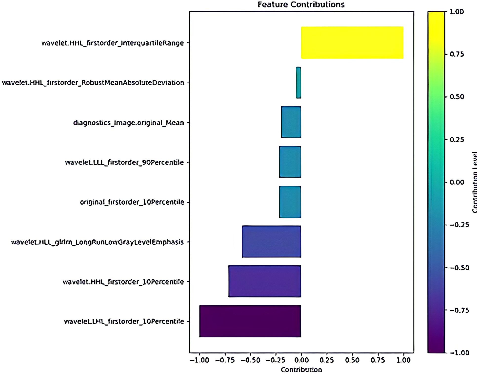 In this study, we leveraged expert-annotated three-dimensional CT images of patients with colorectal cancer liver metastases to extract radiomic features. Utilizing the Pyradiomics package in Python, we initially extracted 995 radiomic features from the raw CT images. However, due to the large volume and potential irrelevance of many features to the model’s decision-making process, feature selection was imperative to reduce noise and improve model performance.