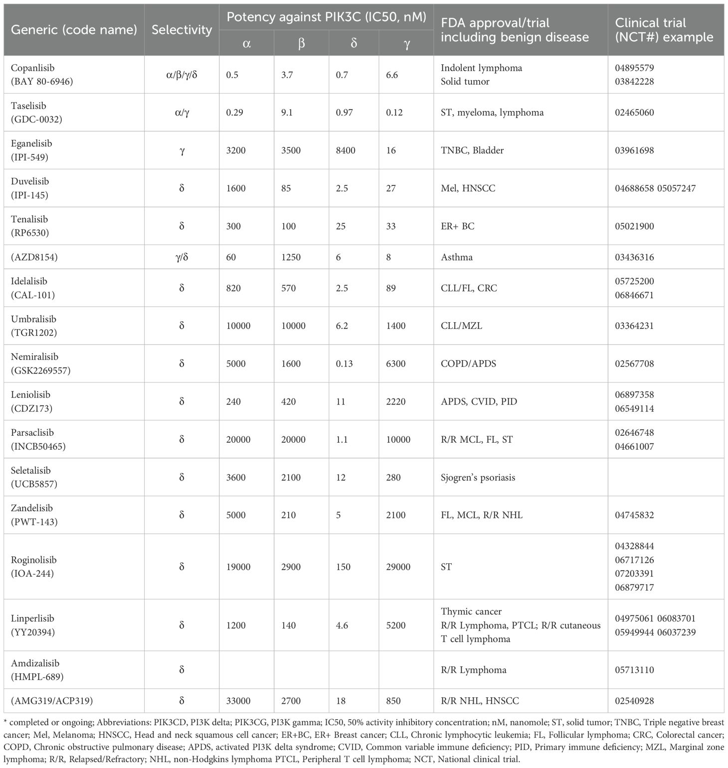 6. Skanland SS, Okkenhaug K, and Davids MS. PI3K inhibitors in hematology: when one door closes. Clin Cancer Res. (2024) 30:3667–75. doi: 10.1158/1078-0432.CCR-24-0967