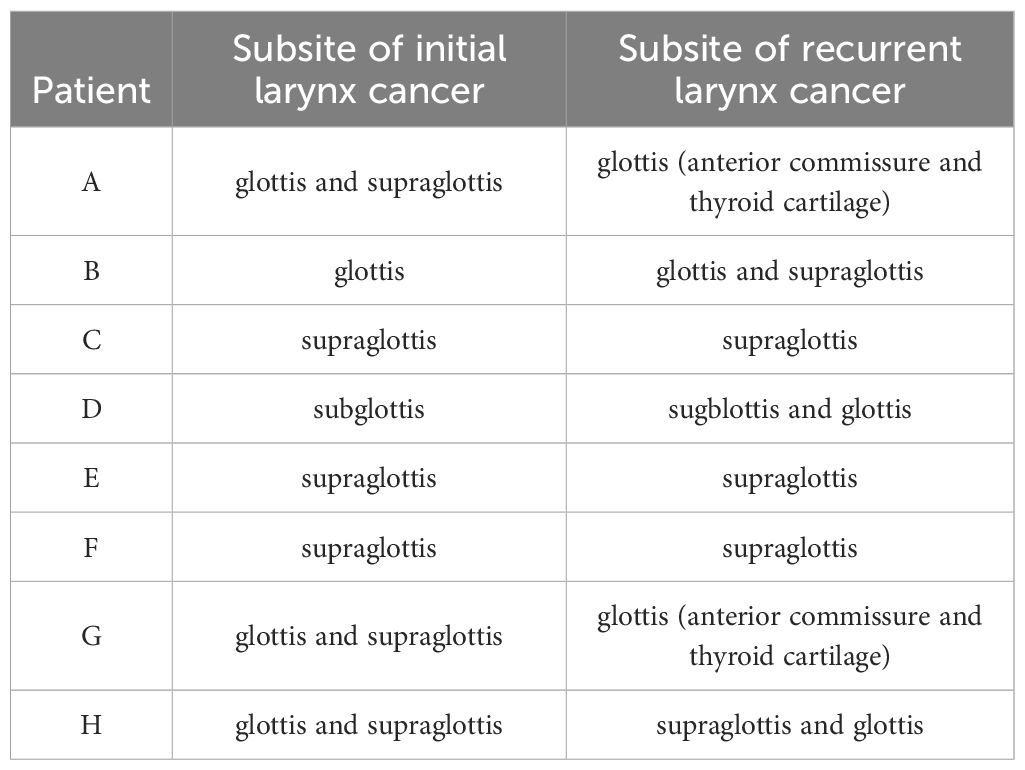 Table 1. Patients with recurrent larynx cancer who received immunotherapy after refusing laryngectomy.