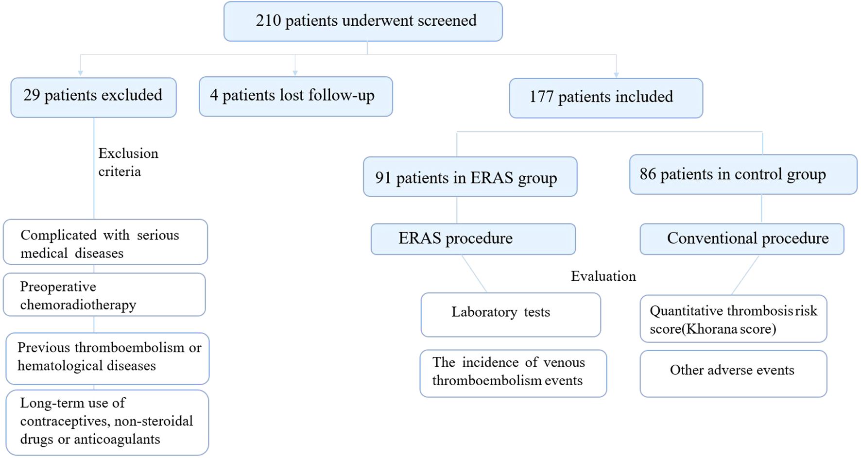 The exclusion criteria encompassed: (1) Complicated with severe underlying medical conditions; (2) Undergoing preoperative chemoradiotherapy; (3) Previous history of thromboembolic events or hematological disorders; (4) Long-term use of contraceptives, non-steroidal drugs, or anticoagulants.