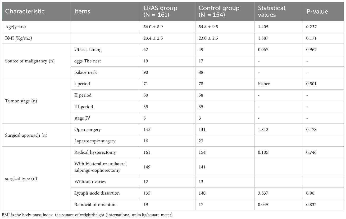 Table 1. Comparison of general clinical data characteristics between the ERAS group and control group.