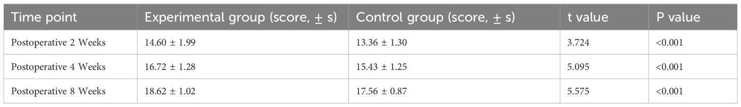 Table 3. Comparison of postoperative LCQ-MC scores between the experimental group and the control group.