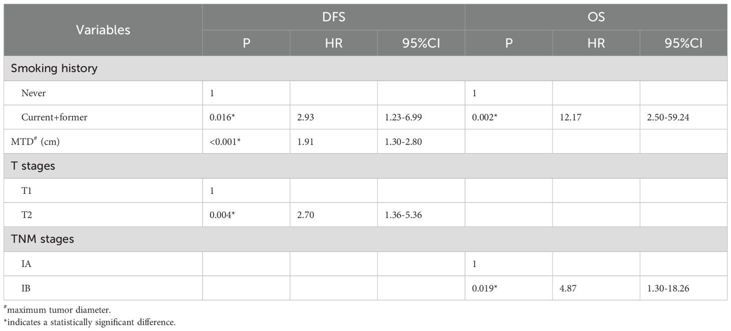 Lung cancer is still a heavy health and economic burden in China, with over 80% being non-small cell lung cancer (NSCLC) (1, 2), which mainly comprises adenocarcinoma (ADC) and squamous carcinoma (SCC). In recent decades, although overall survival (OS) for locally advanced NSCLC and those with remote lesions has greatly improved due to the success of immunotherapy-based regimens and targeted therapies (3–5), radical resection is still the optimal choice for early-stage cases, specifically stage I. Fortunately, with the success of clinical trials, including ADAURA (6), Keynote091 (7), and IMpower 010 (8), the survival for stage IB cases has been further guaranteed. Nonetheless, the 5-year OS for stage IA patients ranges from 77-92%, declining up to 68% for stage IB patients (9). Although many innovative prognostic indicators, such as molecular residual disease (MRD), have been reported and are very helpful in subsequent treatment strategy decisions in these cases (10, 11), searching for easily accessible and highly cost-effective prognostic indicators is still needed at present in practice.
