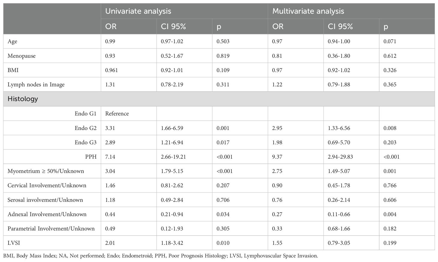 Table 2. Factors associated with complementary lymphadenectomy.