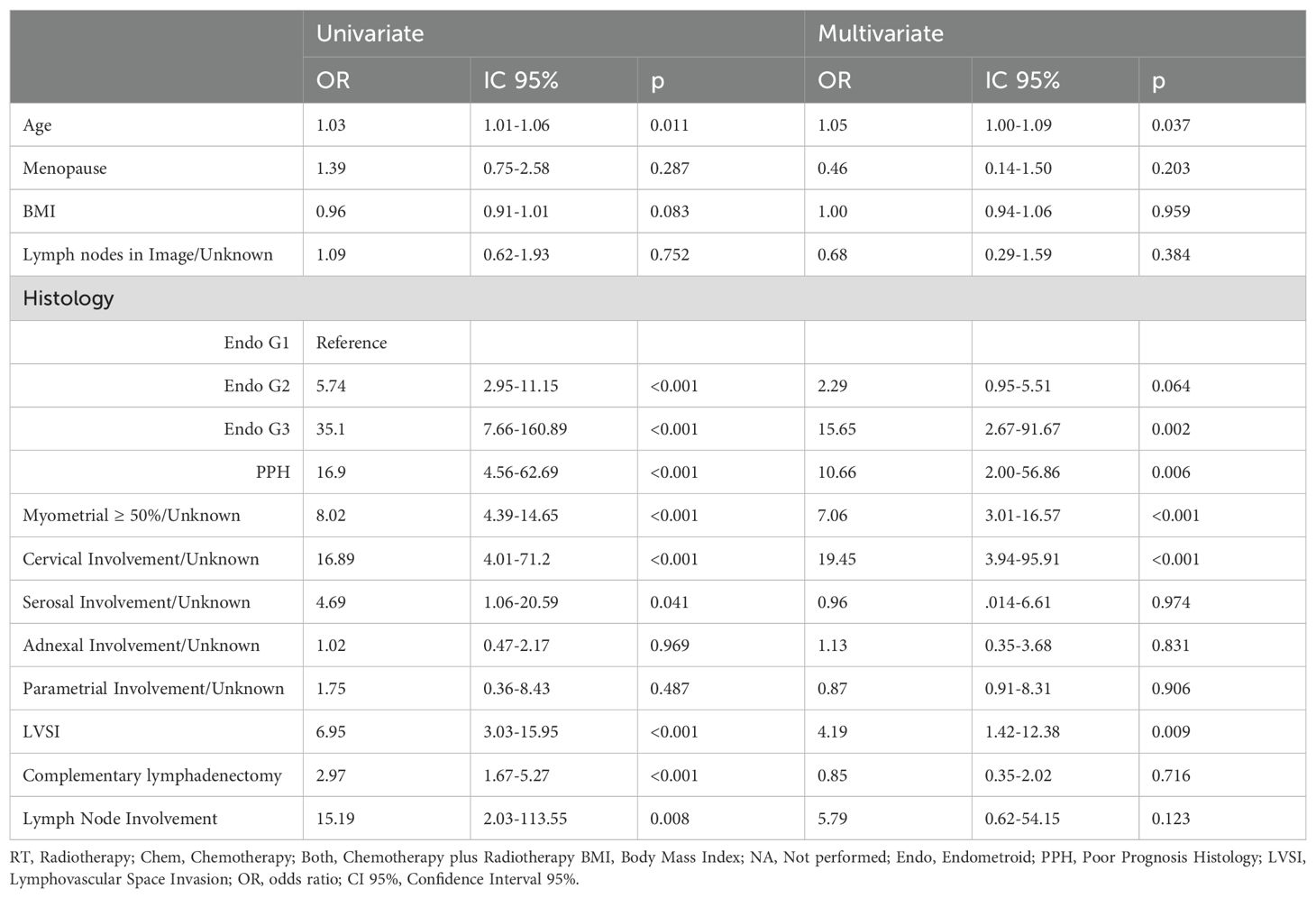 Table 3. Factors associated to adjuvant treatment (RT or Chem or Both).