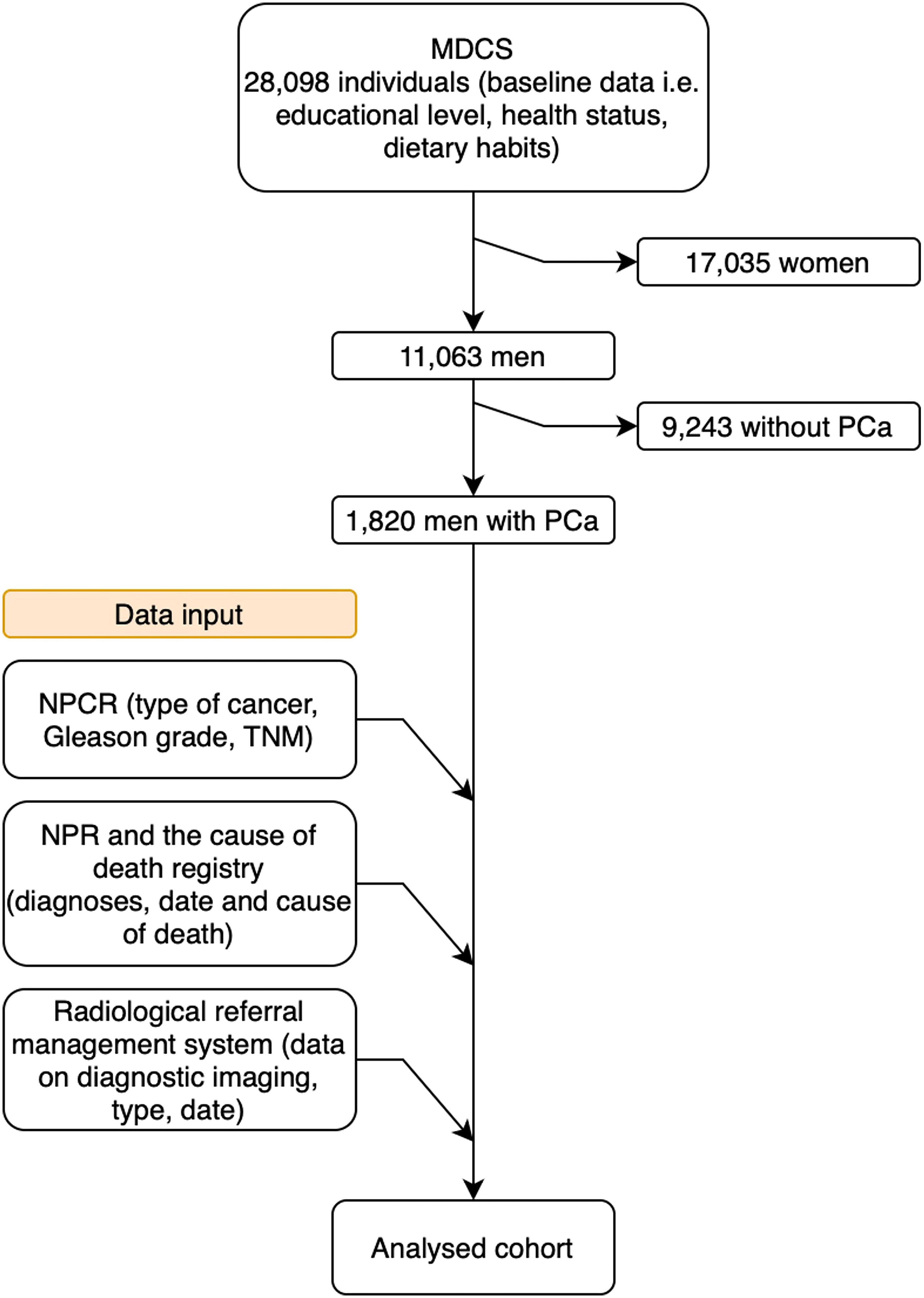 Figure 1. Flowchart of the data collection process. MDCS, Malmö Diet and Cancer Study; PCa. Prostate cancer; NPCR, National Prostate Cancer Register; TNM, Tumor, node, metastasis; NPR, National Patient Register.