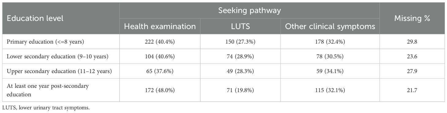 Table 2. The number (and proportion) of men within each educational level and the corresponding seeking pathway which led to the prostate cancer diagnosis.