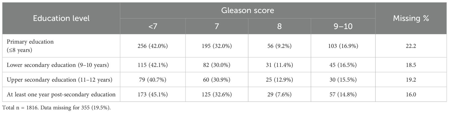 Table 3. The number (and proportion) of men within each education level with the corresponding Gleason score.
