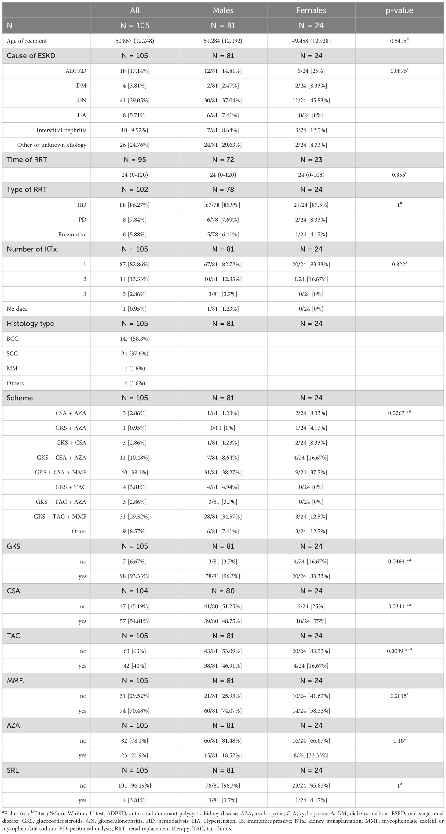 Methods: This study included 105 KTRs, out of approximately 1,500, who were under the care of the Transplant Outpatient Clinic at the University Hospital in Gdansk between 1980 and 2022 and were diagnosed with NMSC.