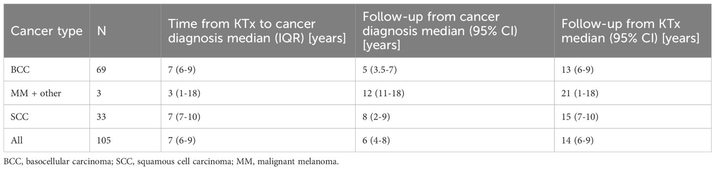Table 3. Time from KTx to cancer diagnosis, follow-up time from cancer diagnosis and follow-up from KTx.
