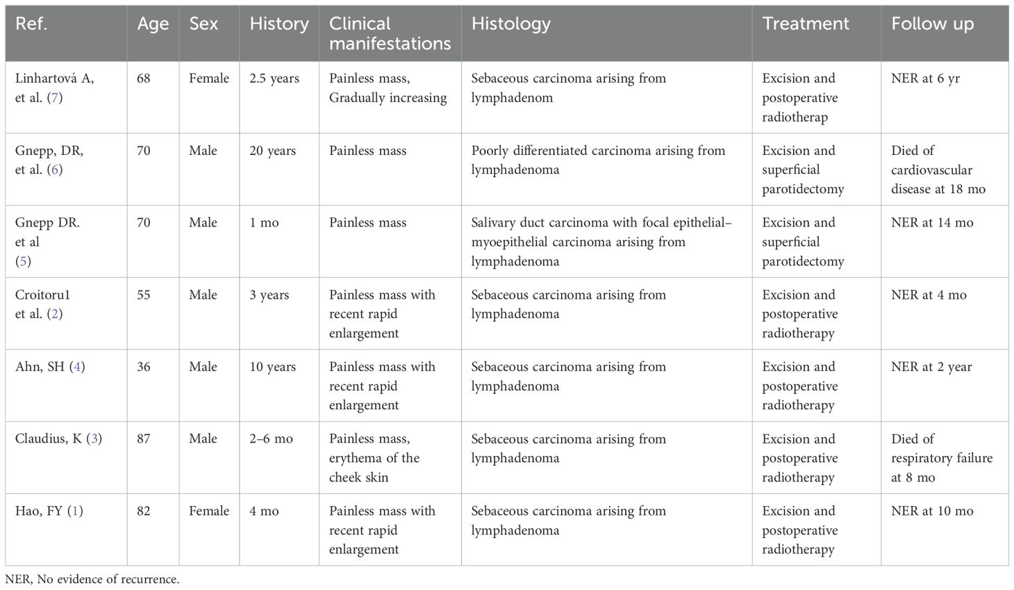 Case Report: Sebaceous lymphadenocarcinoma arising in parotid gland: eighth documented case with lymph node metastasis