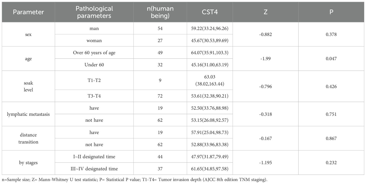 3.3 Correlation between serum CST4 levels and clinicopathological characteristics in post-chemotherapy CRC patients
