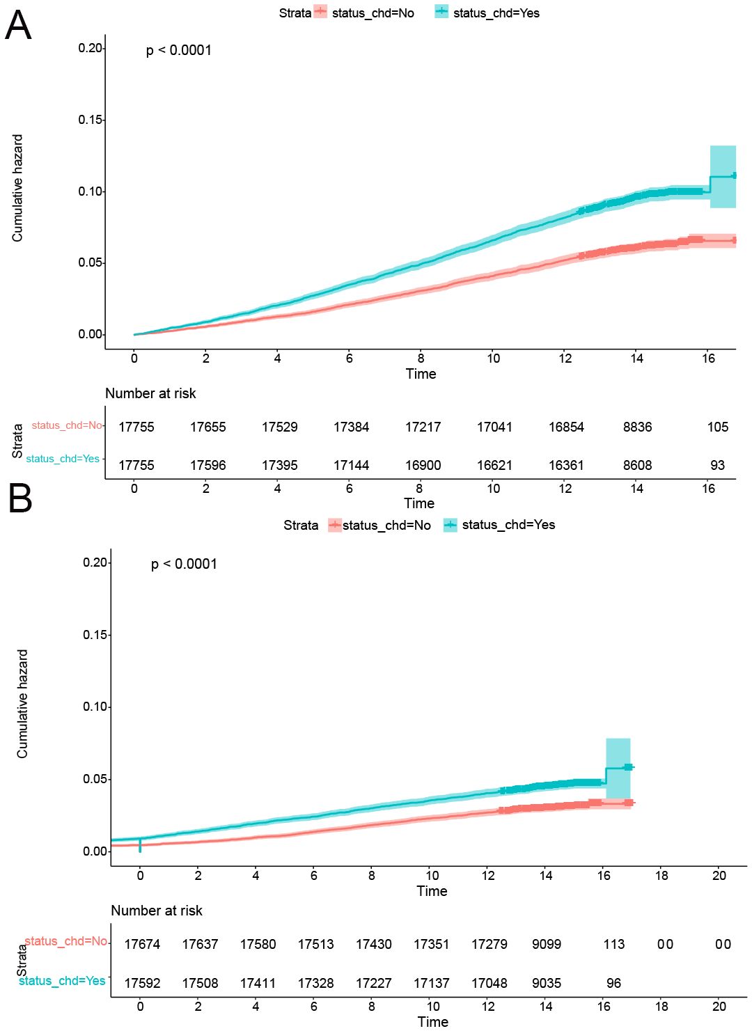 Figure 4. CDH was a risk factor for onset of CRPs after PSM. (A) The cumulative incidence rate of colon polyp in patients with or without CHD. (B) The cumulative incidence rate of rectal polyp in patients with or without CHD.
