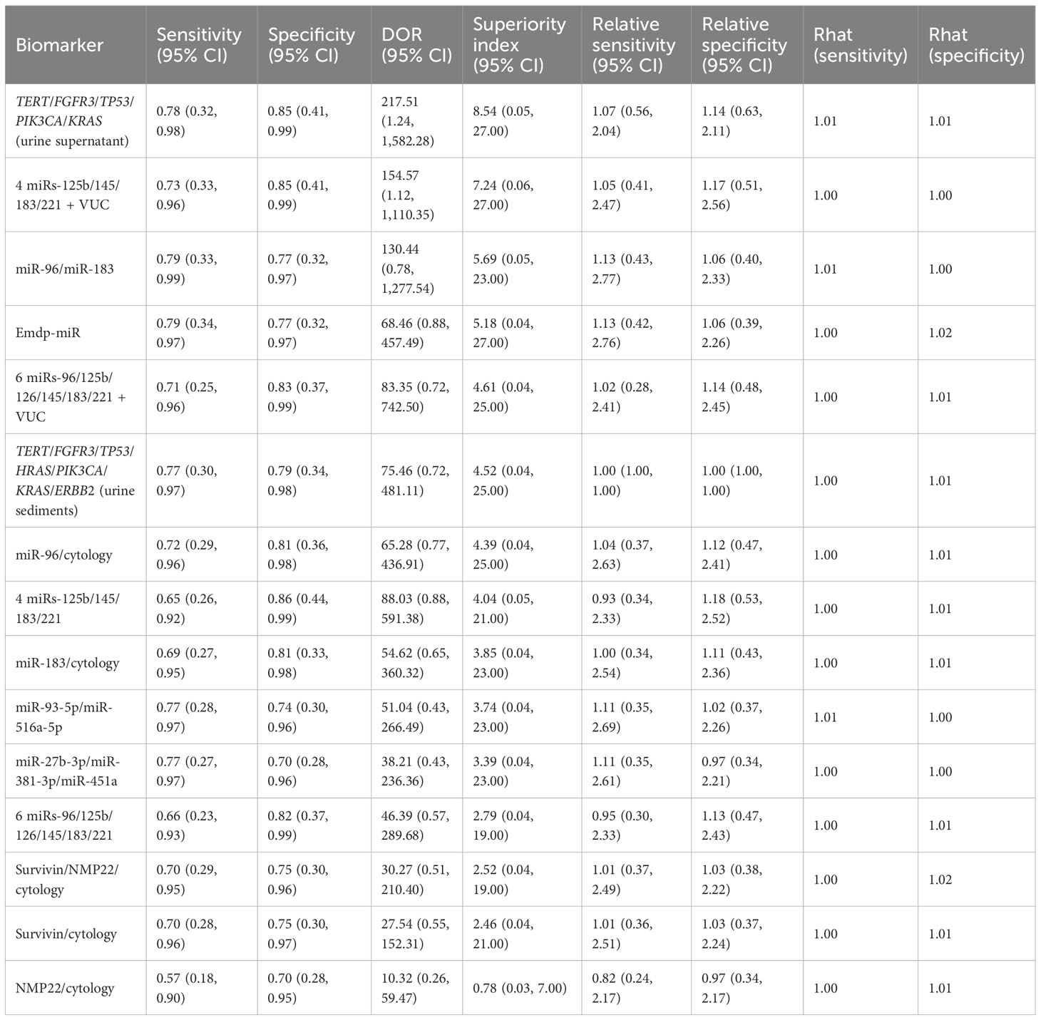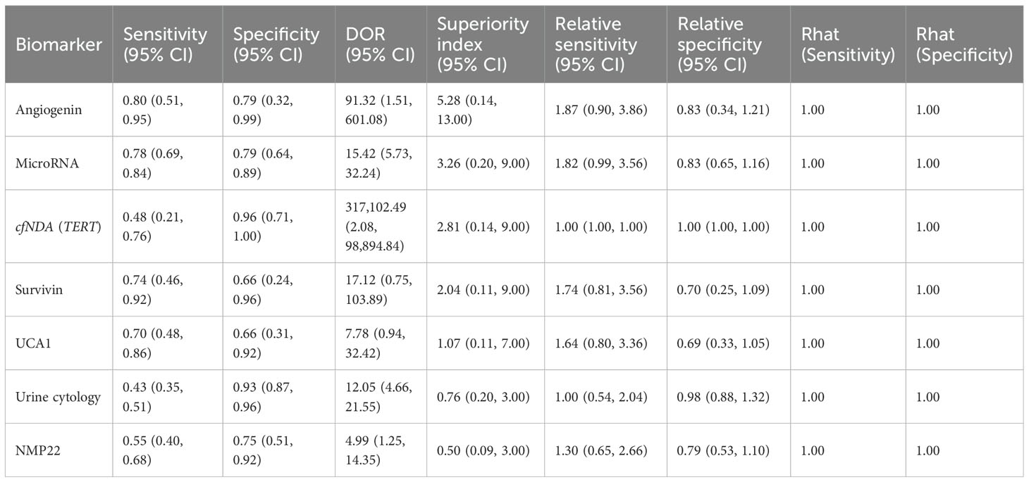 Keywords: bladder cancer, non-invasive diagnosis, biomarker, network meta-analysis, superiority index