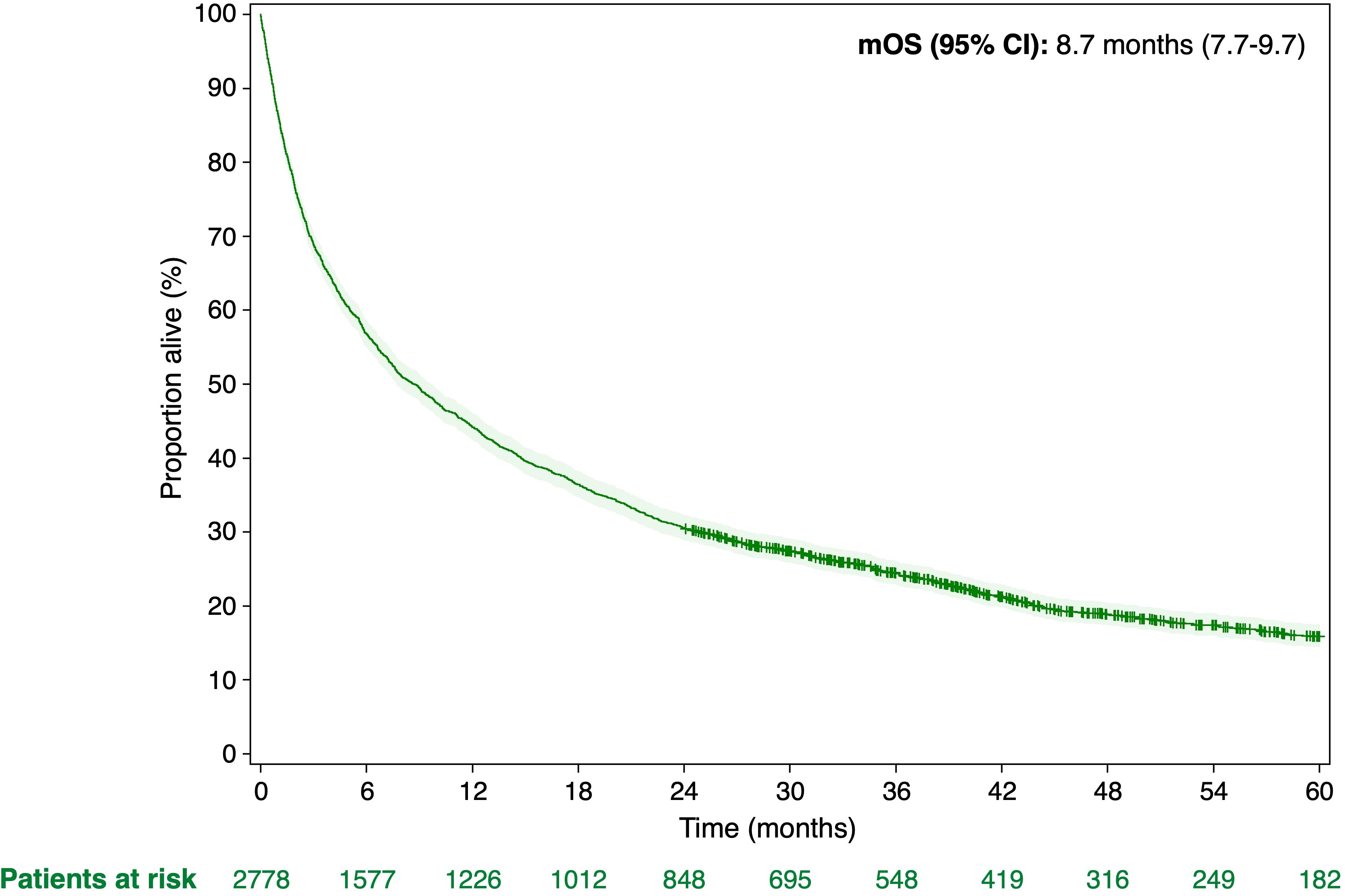 Although treatment modalities were not considered in the present analysis, therapy also has a major impact on survival. In a recently published study based on the same patient cohort, we showed that patients who received curative therapy had a markedly better median survival (40.4 months) compared to those receiving non-curative treatment (9.7 months) (21).