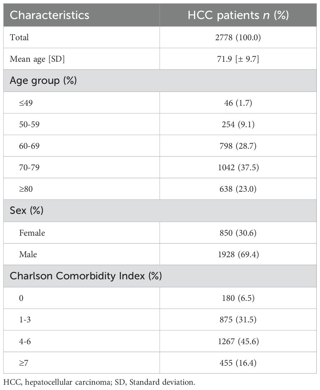 Table 1. Baseline characteristics of HCC patients at the time of initial diagnosis over the period 2016-2020 (N = 2,778).