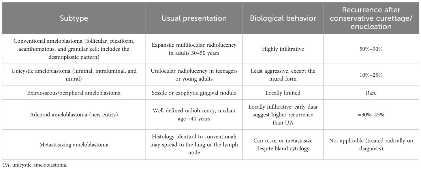 9. Zhao Z, Xiong G, Wang C, and Cao W. From pathogenesis to precision medicine: Transformative advances in research and treatment of ameloblastoma. Cancer Lett. (2025) 612:217448. doi: 10.1016/J.CANLET.2025.217448