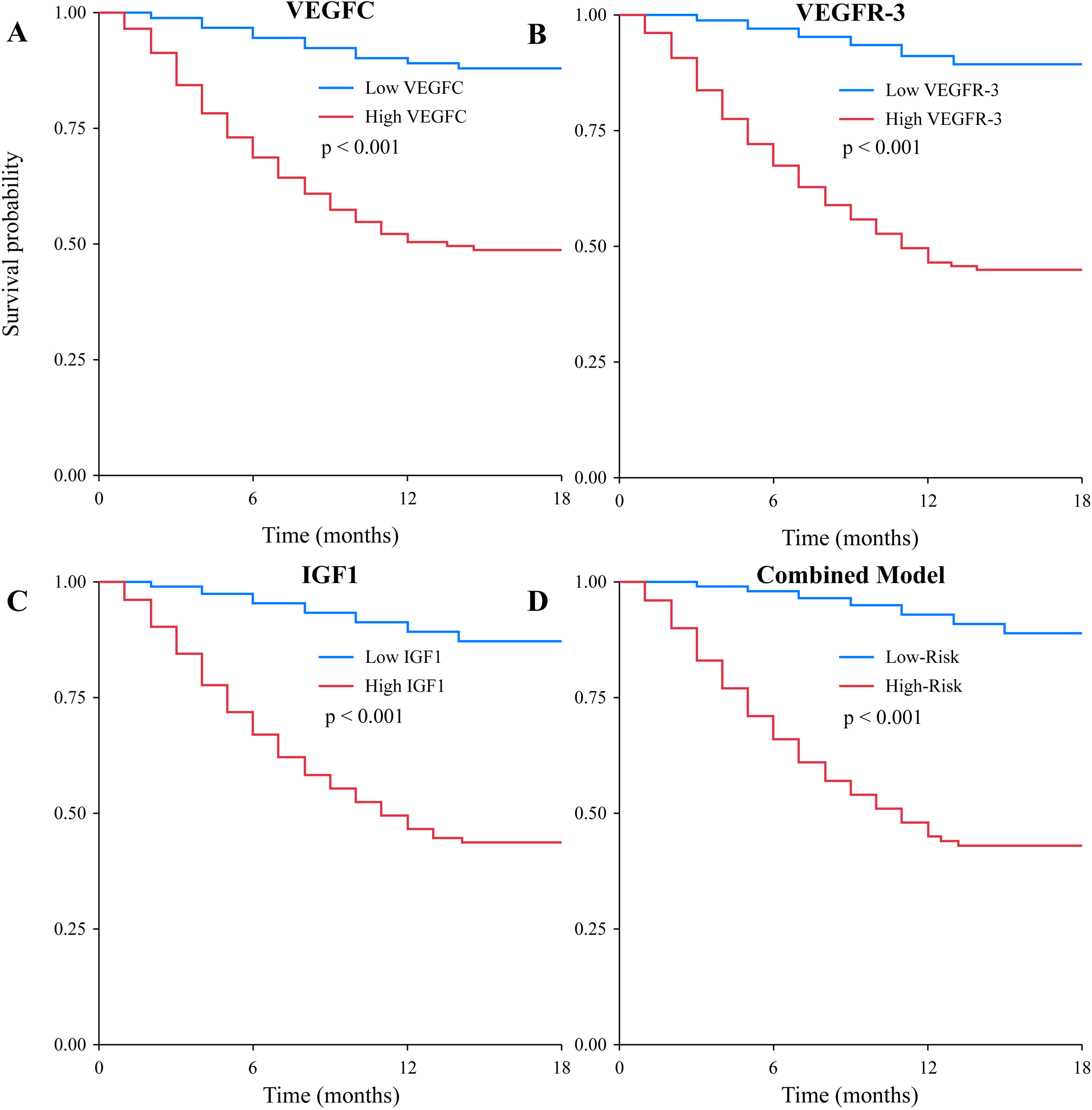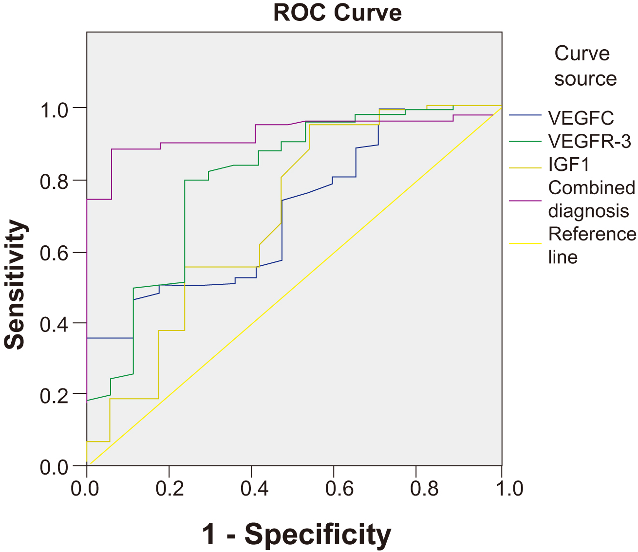 | Combined (VEGFC+VEGFR-3+IGF1) | – | 0.927 | 0.891–0.963 | 0.885 | 0.841 |