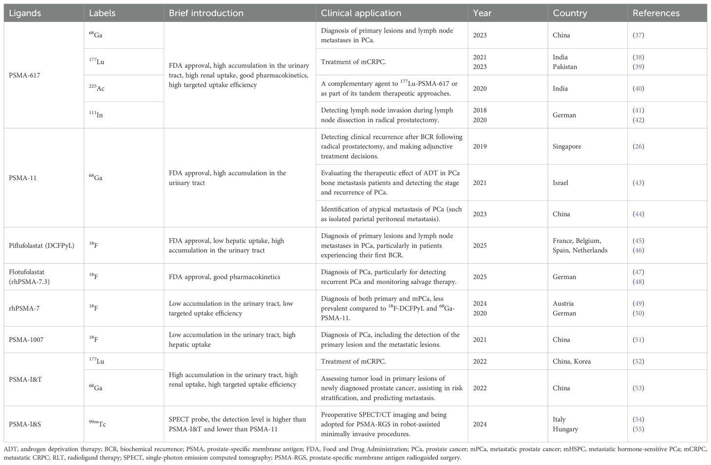 59. Yan Y, Zhuo H, Li T, Zhang J, Tan M, and Chen Y. Advancements in PSMA ligand radiolabeling for diagnosis and treatment of prostate cancer: a systematic review. Front Oncol. (2024) 14:1373606. doi: 10.3389/fonc.2024.1373606
