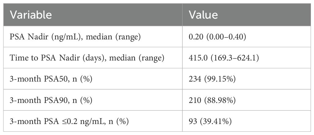 Table 4. Multivariable logistic regression analysis of factors associated with achieving PSA ≤0.2 ng/mL at 3 months.