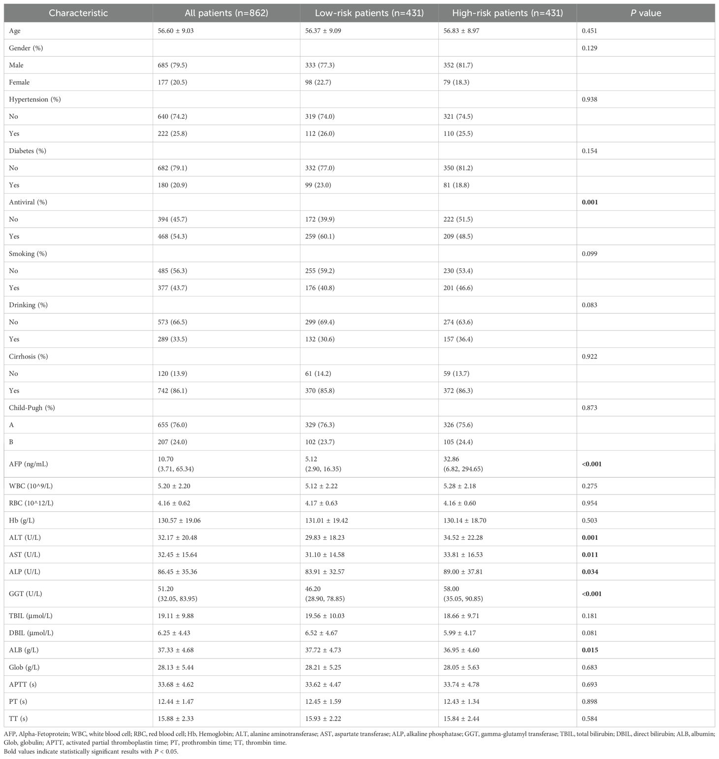 This study enrolled 862 HCC patients who received ablation treatment at Beijing You’an Hospital, Capital Medical University, between January 1, 2015, and December 31, 2022. The diagnosis of HCC was according to the American Association for the Study of Liver Disease (AASLD) guideline. The inclusion criteria were as follows: (1) age from 18 to 80 years; (2) complete clinical and follow-up data; (3) BCLC stage 0, A or B; (4) Child-Pugh class A or B. Exclusion criteria: Patients were excluded if they met any one of the following criteria: (1) received other treatment before ablation; (2) distant metastasis of HCC; (3) secondary liver cancer; (4) coagulation function disorders or serious diseases of vital organs, such as the heart, brain, lung, and kidney.