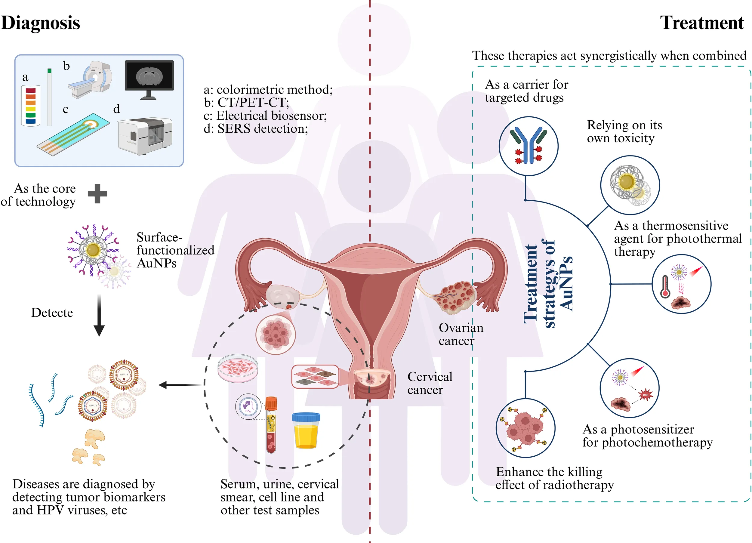 Collectively, AuNPs represent a pivotal milestone in precision medicine, offering transformative potential for timely cancer intervention. The following sections detail the application of AuNPs, critically evaluating their contributions to diagnosing and treating gynecological malignancies to establish a reference framework for clinical practice.