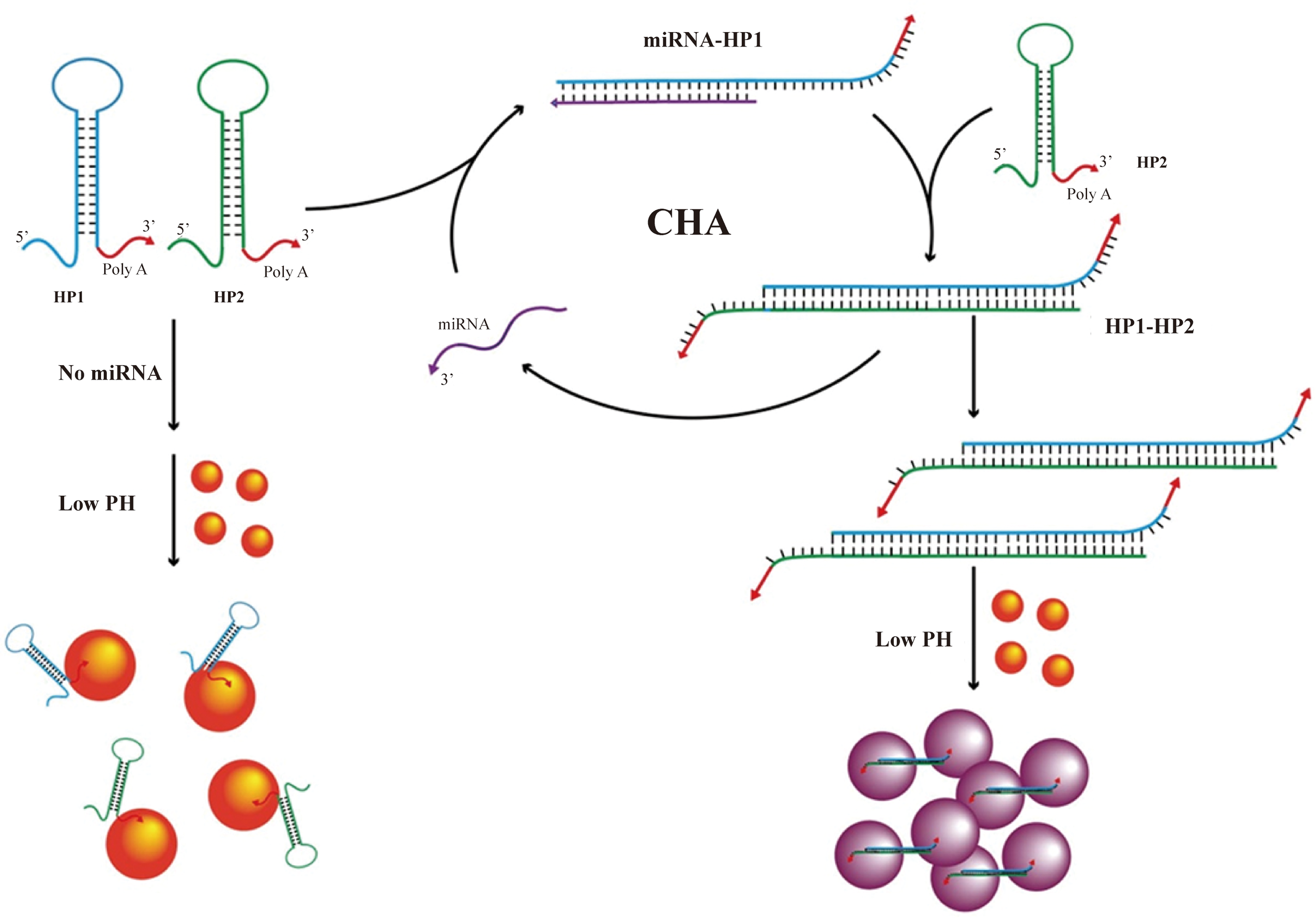 Schematic diagram of the detection process of smiRNA378 by colorimetric method based on AuNP design (31).(copyright permission obtained).