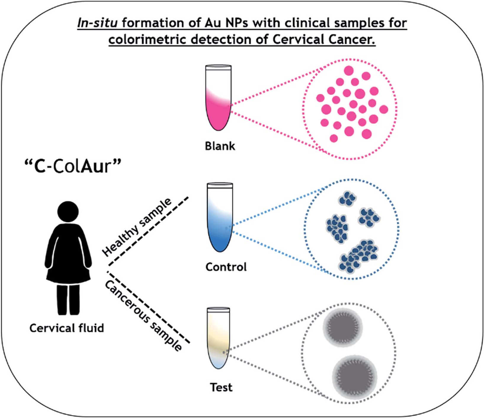 Schematic showing the colorimetric detection of cervical cancer using the label-free “C-ColAur” technique (33).