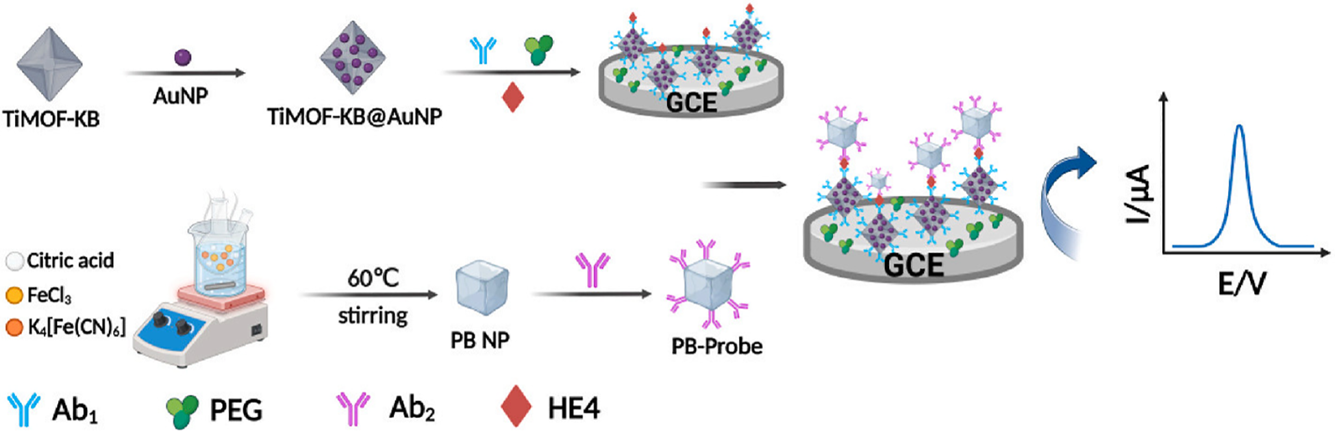 | 3 | 13.2 ± 2.32nm | p16INK4a; P53; Ki67 | Thiolation; Electrostatic adsorption | Schematic of label-free sensing with redox reporters (Cd²+/DAP/MB);3SPCE array/GO/2D WS2/PEI-AuNPs/redox probe | Artificial serum | 9.38nM; 5.49nM; 0.56nM | 0.01~100ng/mL | (40) |