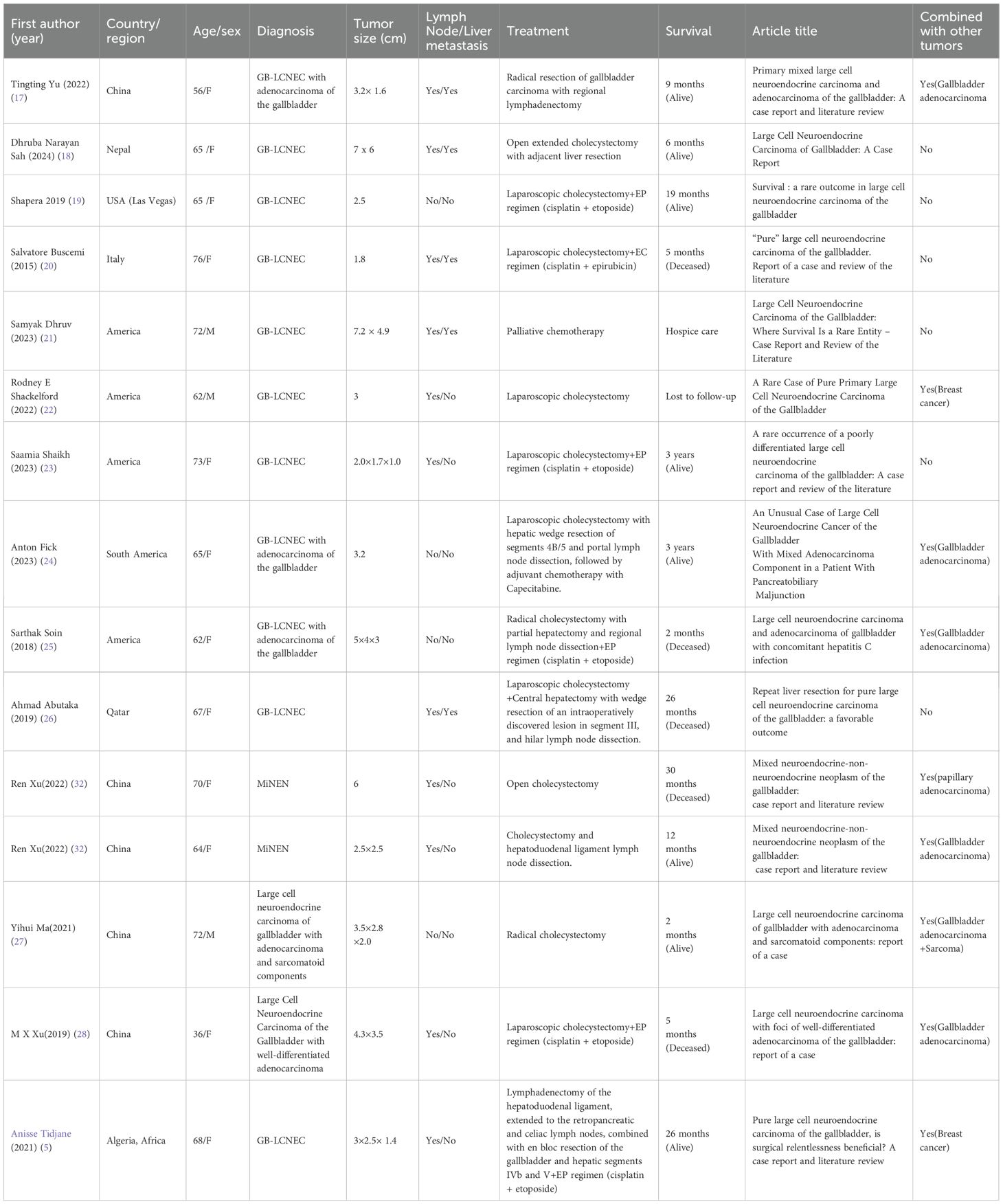 Table 1. A review of global case reports of gallbladder large cell neuroendocrine carcinoma over the past decade.