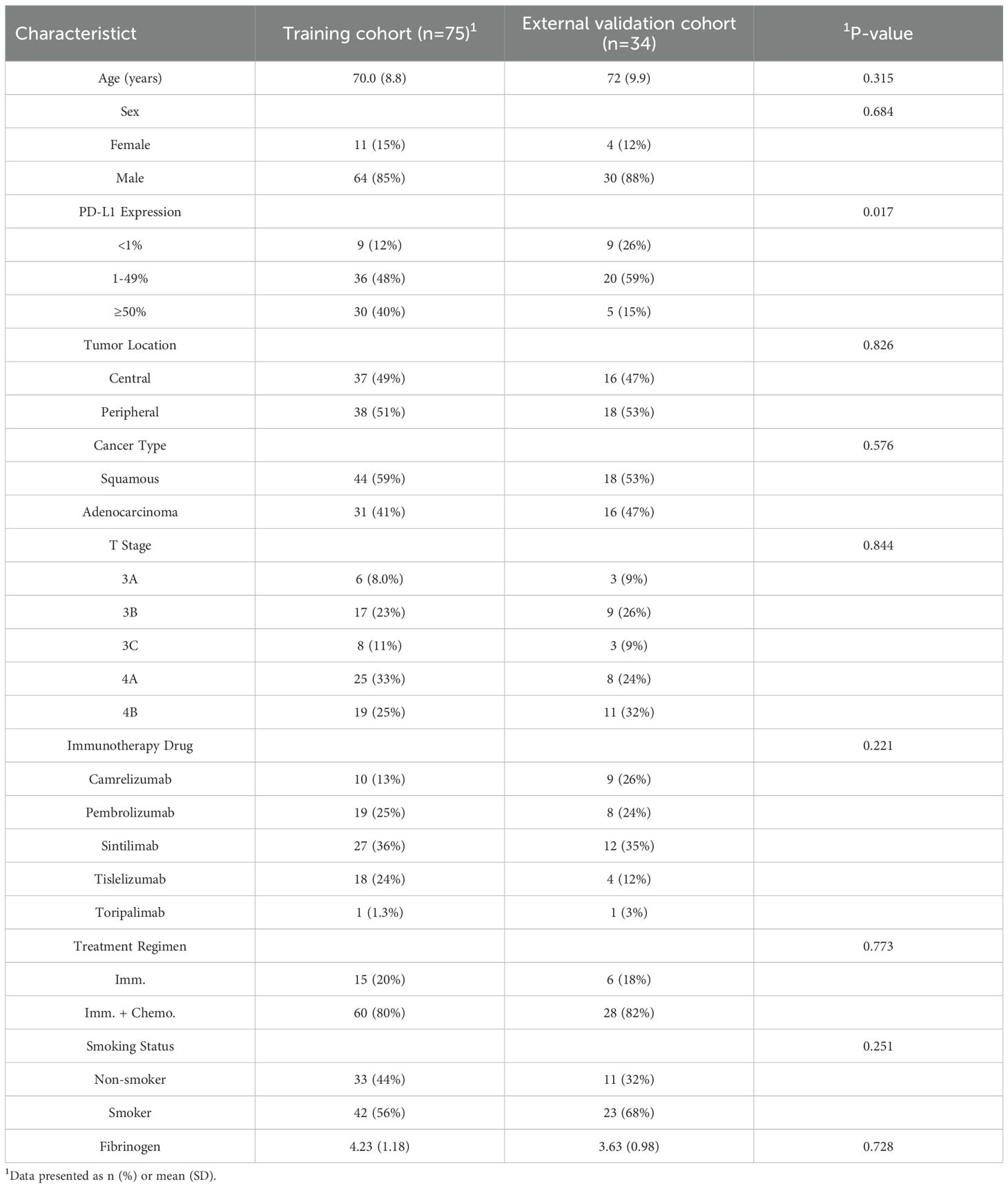 3.1 Baseline characteristics of patients in the training and external validation cohorts