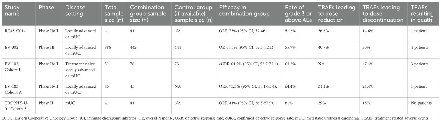 3. Powles T, Valderrama BP, Gupta S, Bedke J, Kikuchi E, Hoffman-Censits J, et al. Enfortumab vedotin and pembrolizumab in untreated advanced urothelial cancer. New Engl J Med. (2024) 390:875–88. doi: 10.1056/NEJMoa2312117