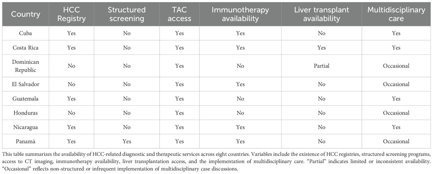 Table 2. Availability of hepatocellular carcinoma services across Central America and the Caribbean.