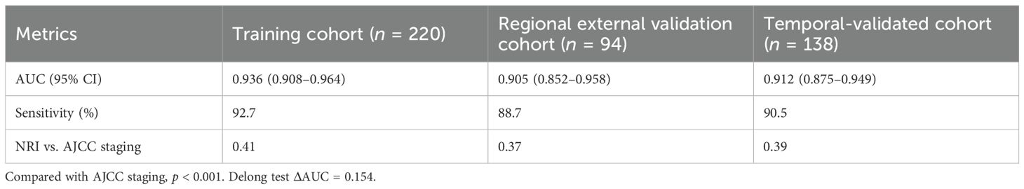 Performance metrics across cohorts are shown in Table 3.