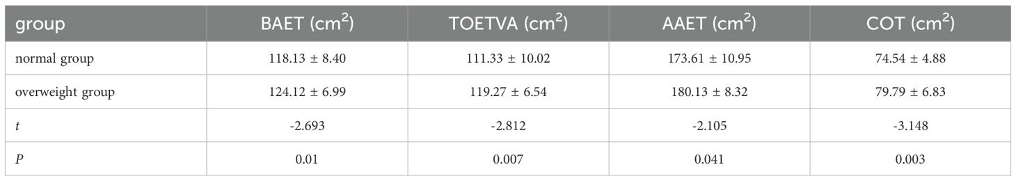 Table 4. Comparison of flap separation area between the normal group and the overweight group.