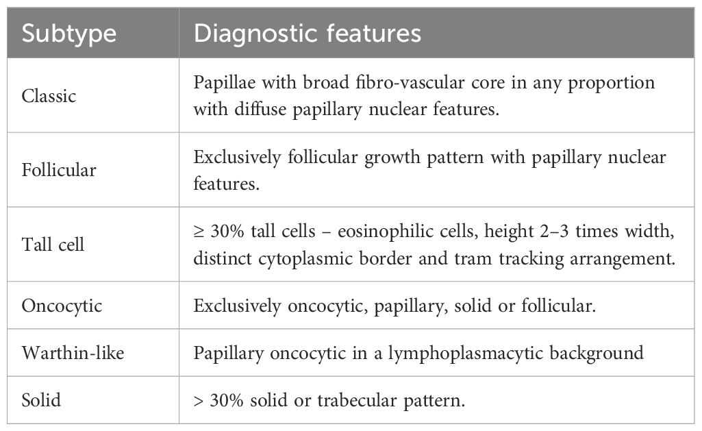 29. Wang X, Cheng W, Liu C, and Li J. The tall cell variant of papillary thyroid carcinoma: current evidence on clinicopathological features and molecular biology. Oncotarget. (2016) 7:40792–8. doi: 10.18632/oncotarget.8215