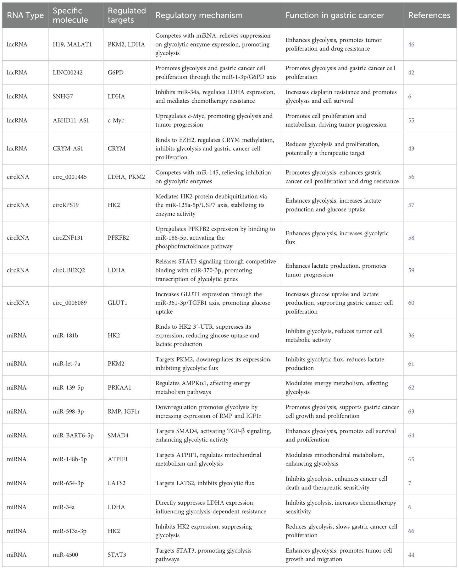 Together, these findings highlight the diverse and critical functions of lncRNAs in the regulation of glycolysis in gastric cancer, offering new potential targets for metabolic intervention.