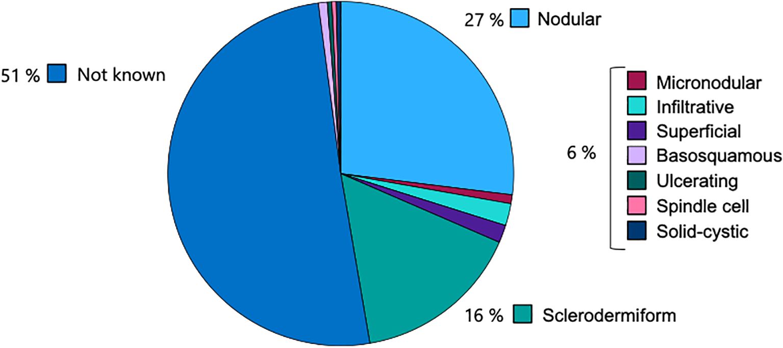 Figure 3. Distribution of histological subtypes of BCC, with nodular (27.0%) and sclerodermiform (15.8%) being most common among specified cases.