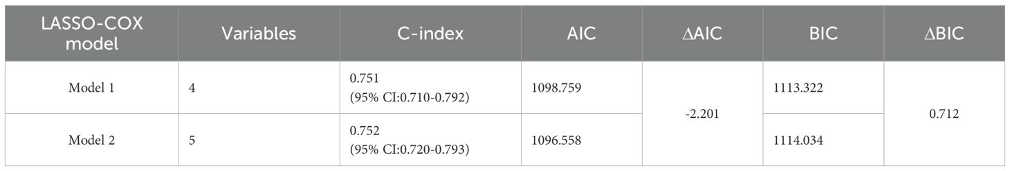 Lasso-Cox regression analysis and comparison of different models