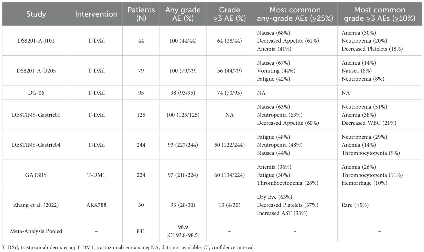 Table 3. Summary of main safety findings from included studies on anti-HER2 ADCs in advanced or metastatic GC.