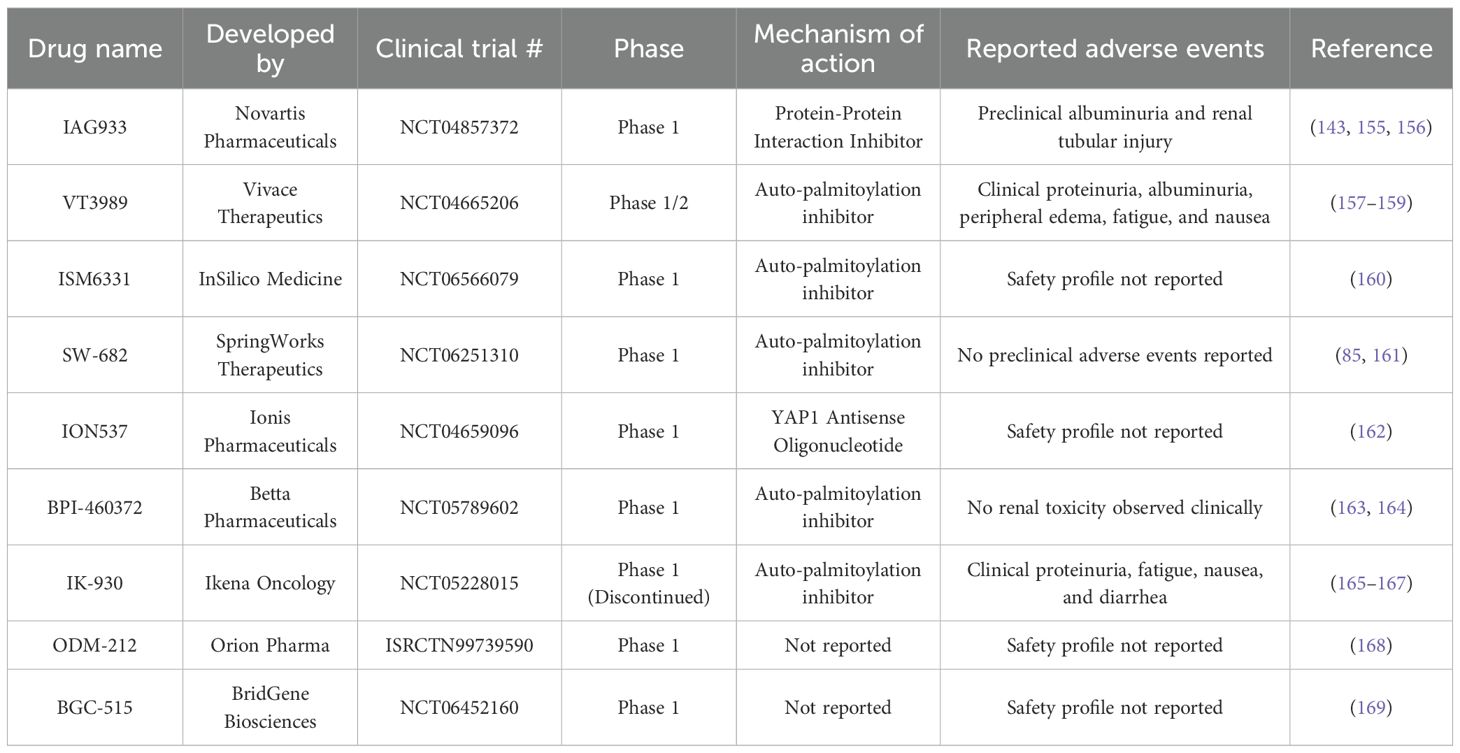 170. Paul S, Sims J, Pham T, and Dey A. Targeting the Hippo pathway in cancer: kidney toxicity as a class effect of TEAD inhibitors? Trends Cancer. (2025) 11:25–36. doi: 10.1016/j.trecan.2024.10.004