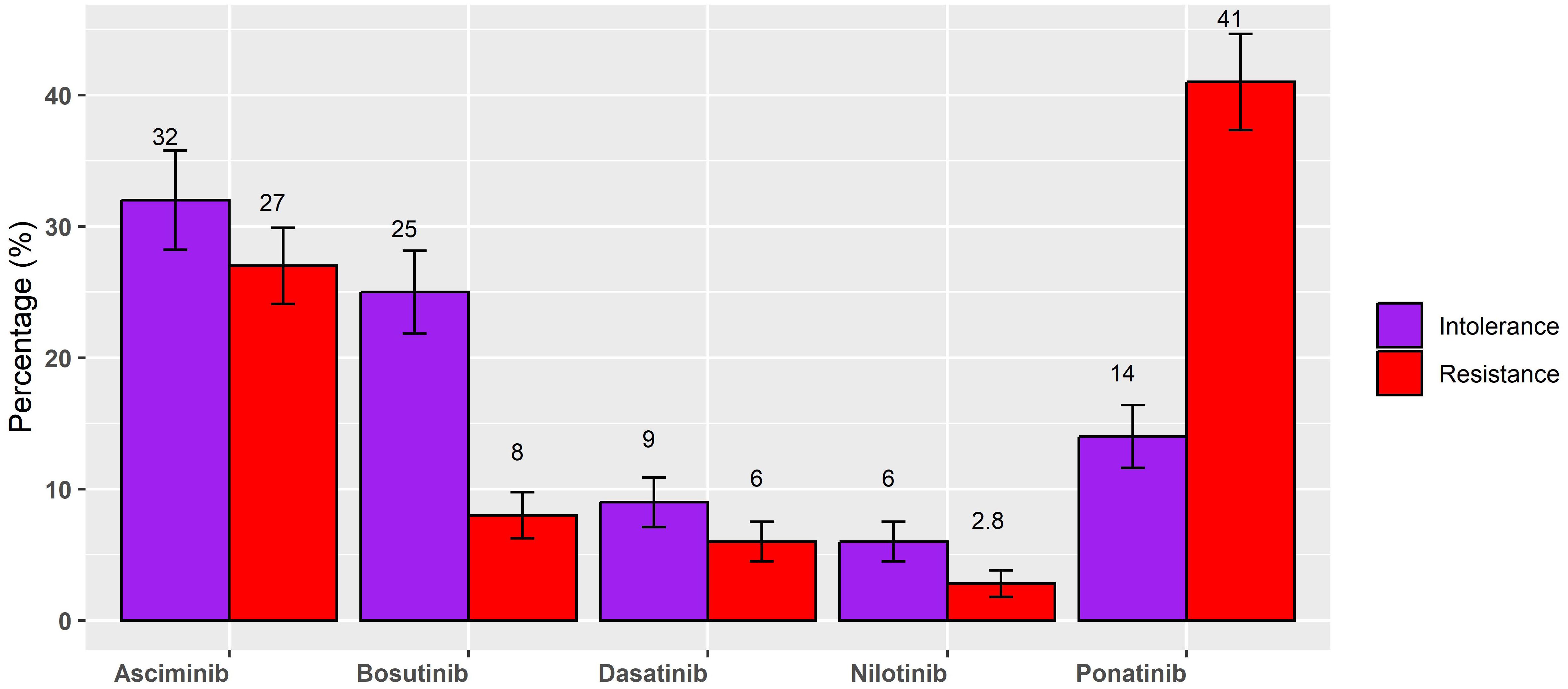 Background: Approximately one-third of chronic myeloid leukemia (CML) patients may develop resistance and/or intolerance to the current therapies and need to switch to later lines of treatment. However, how to choose a later line of therapy is still a matter of discussion.
